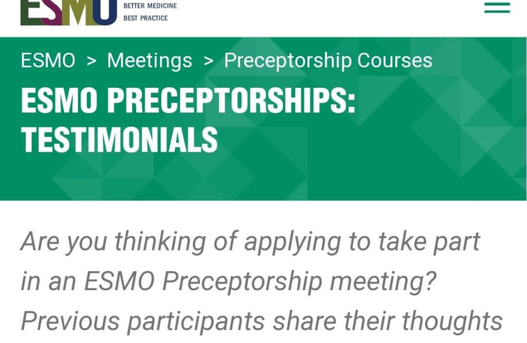 Accepted testimonial for esteemed ESMO preceptorship meetings